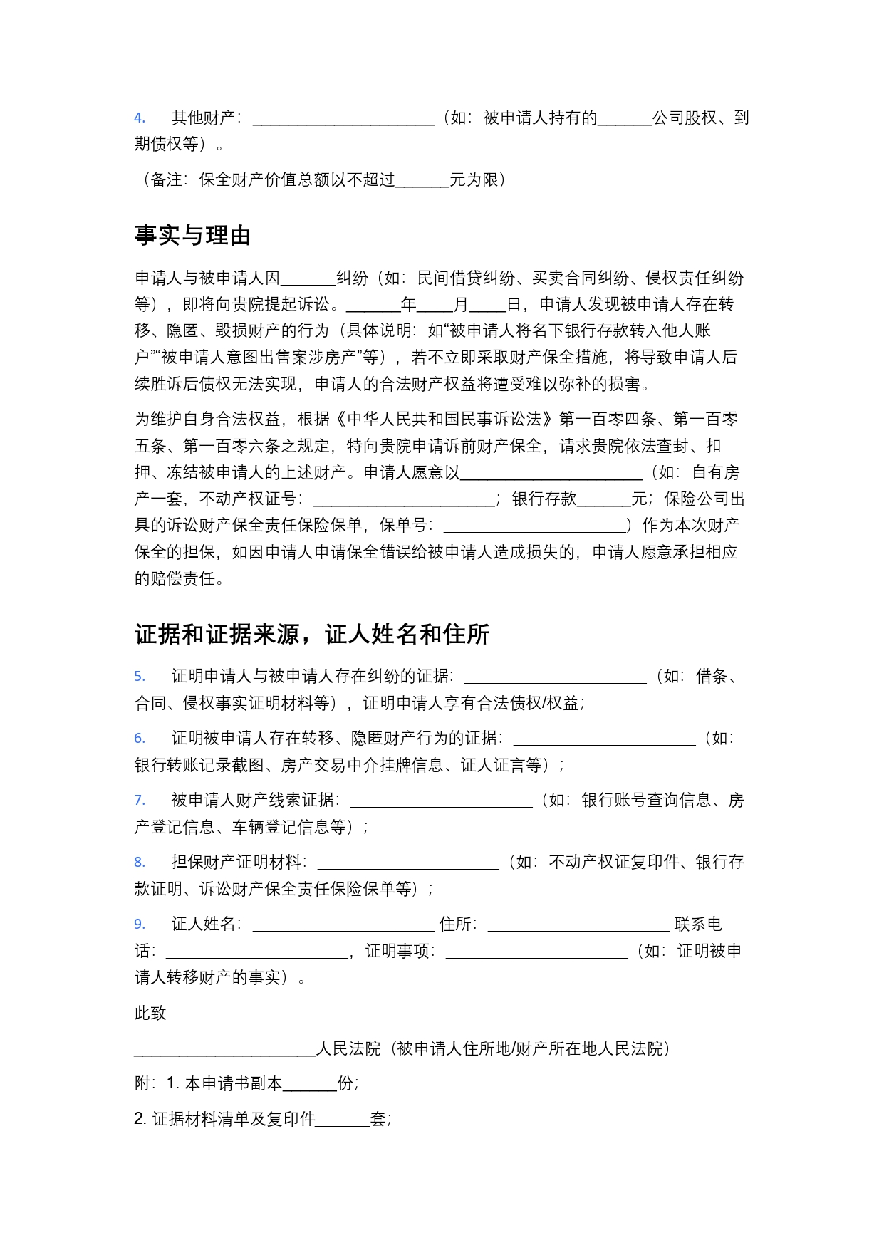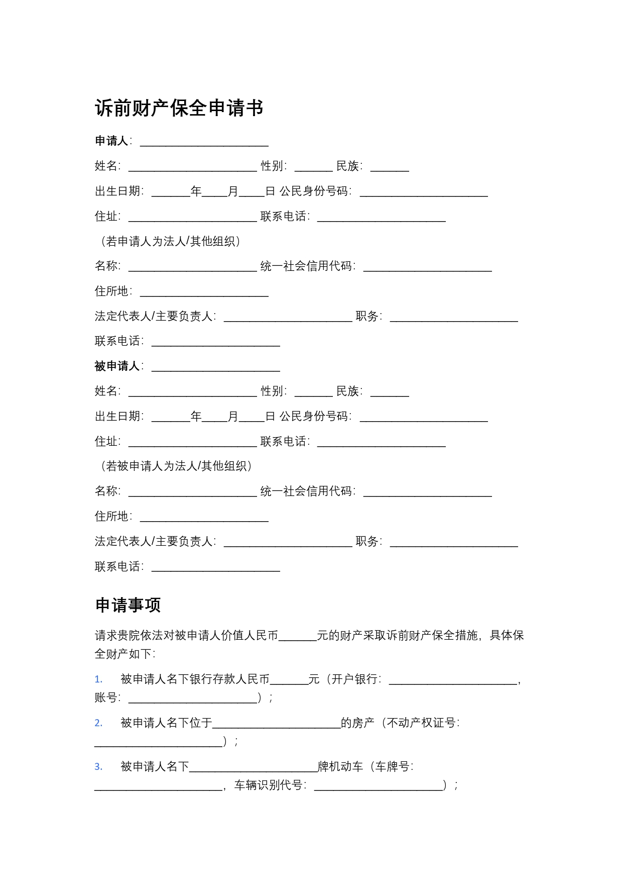 诉前财产保全书