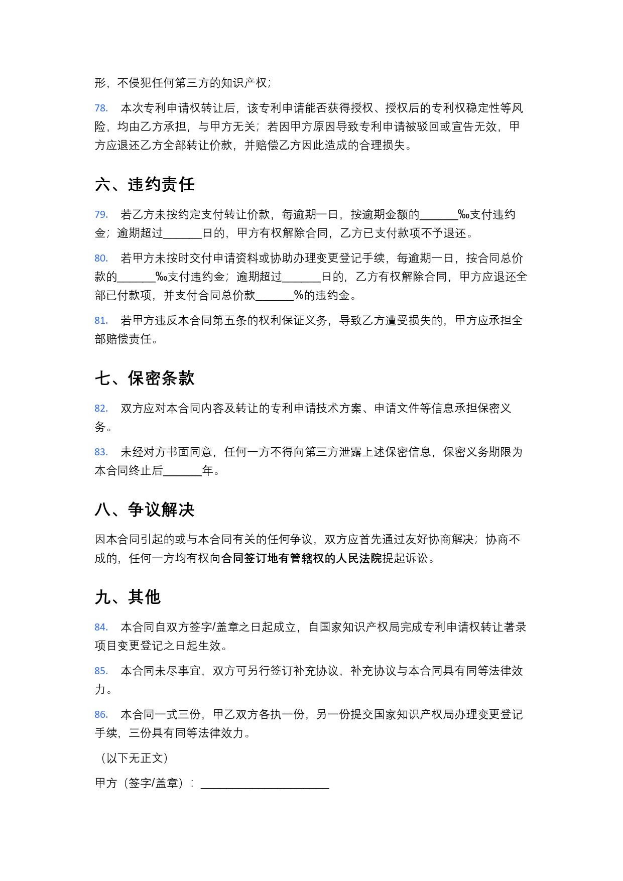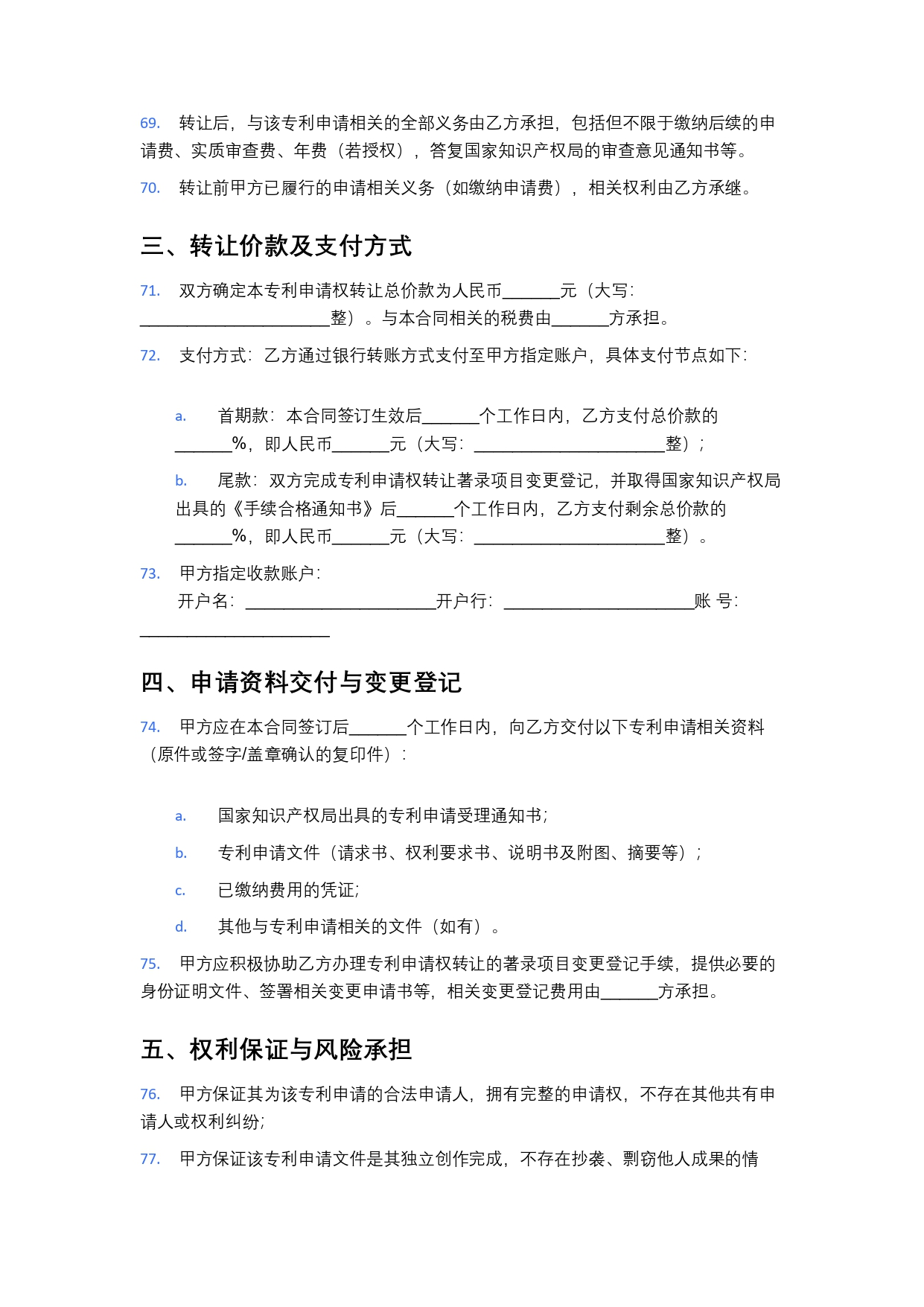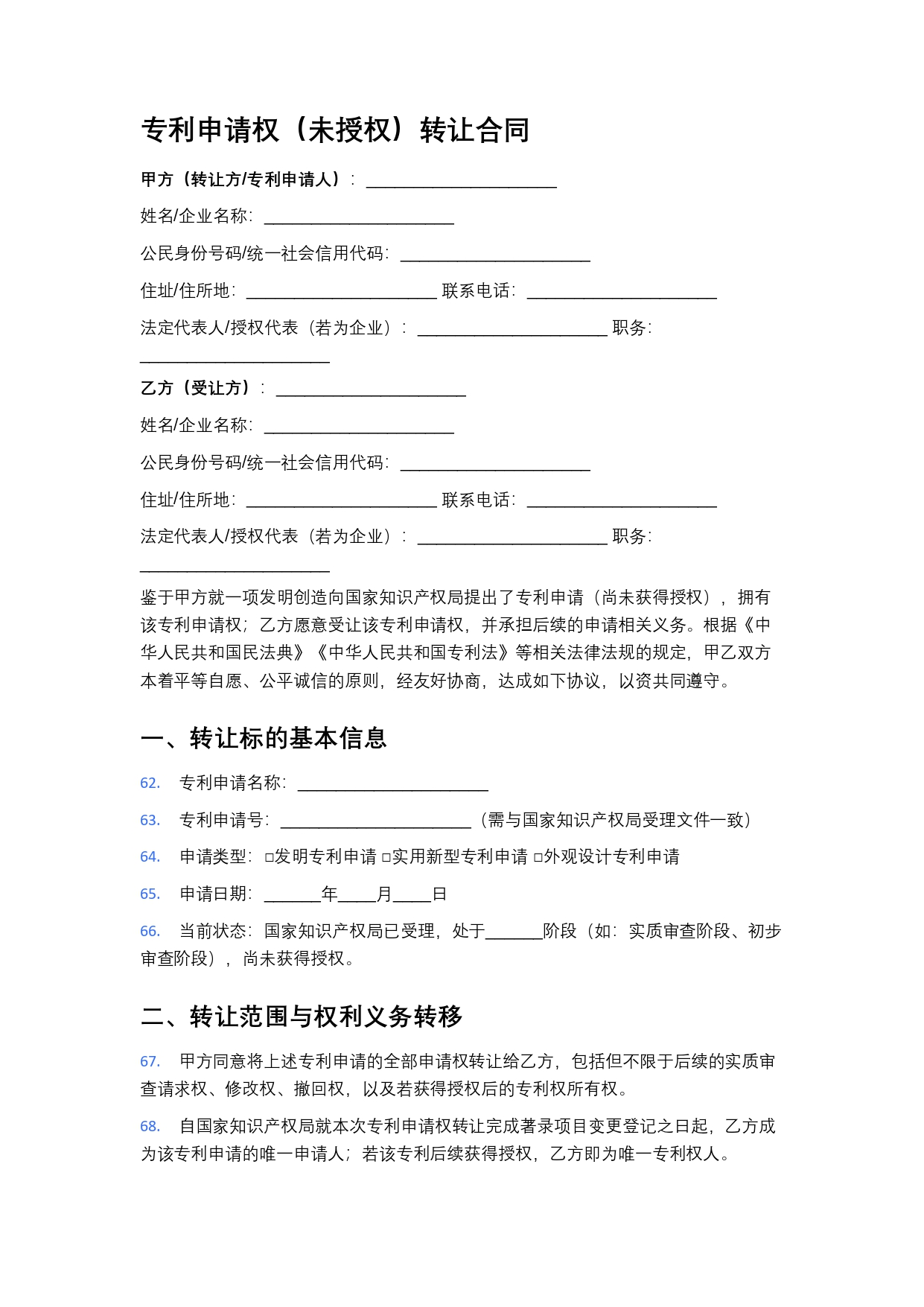 专利申请权(未授权)转让合同