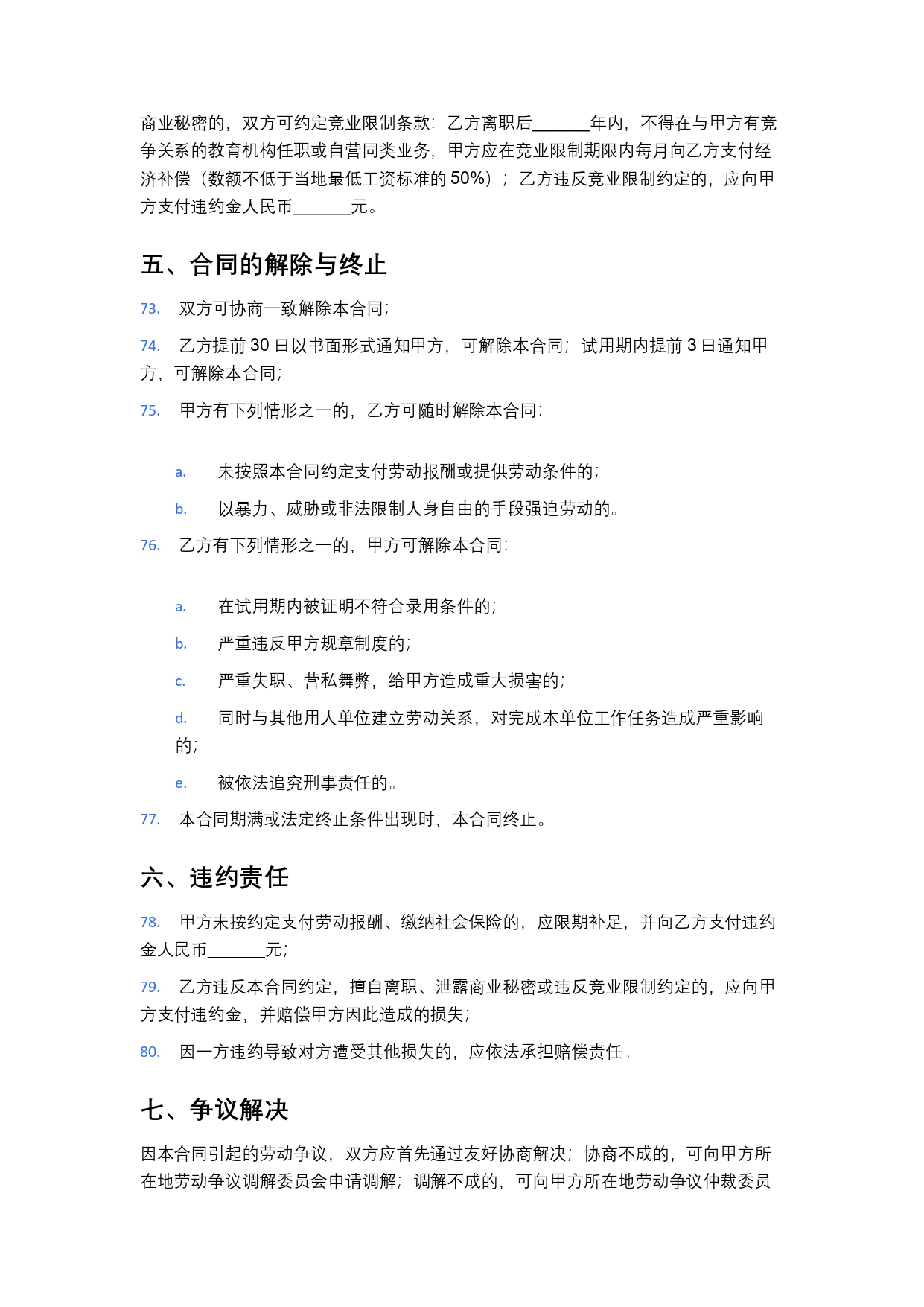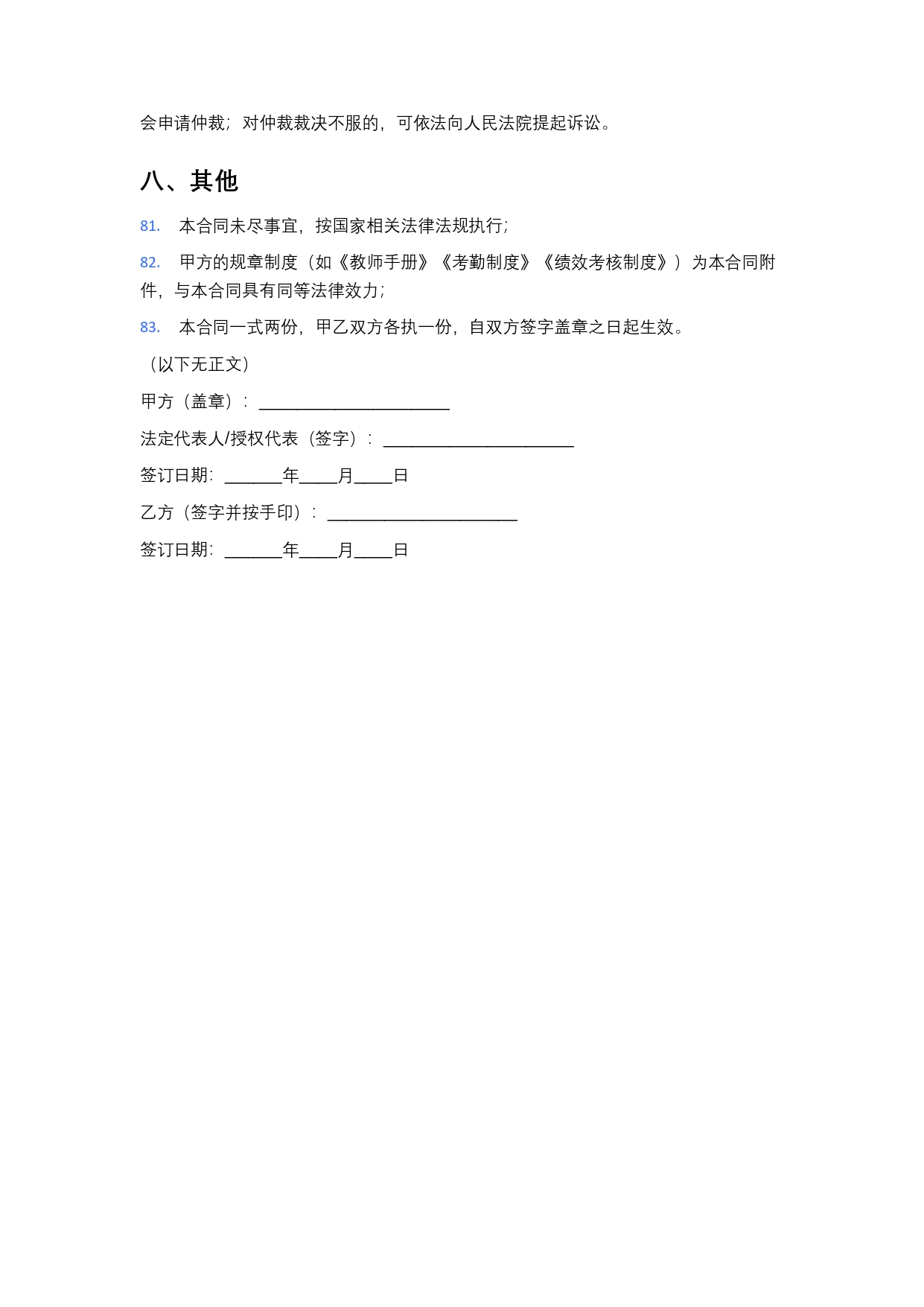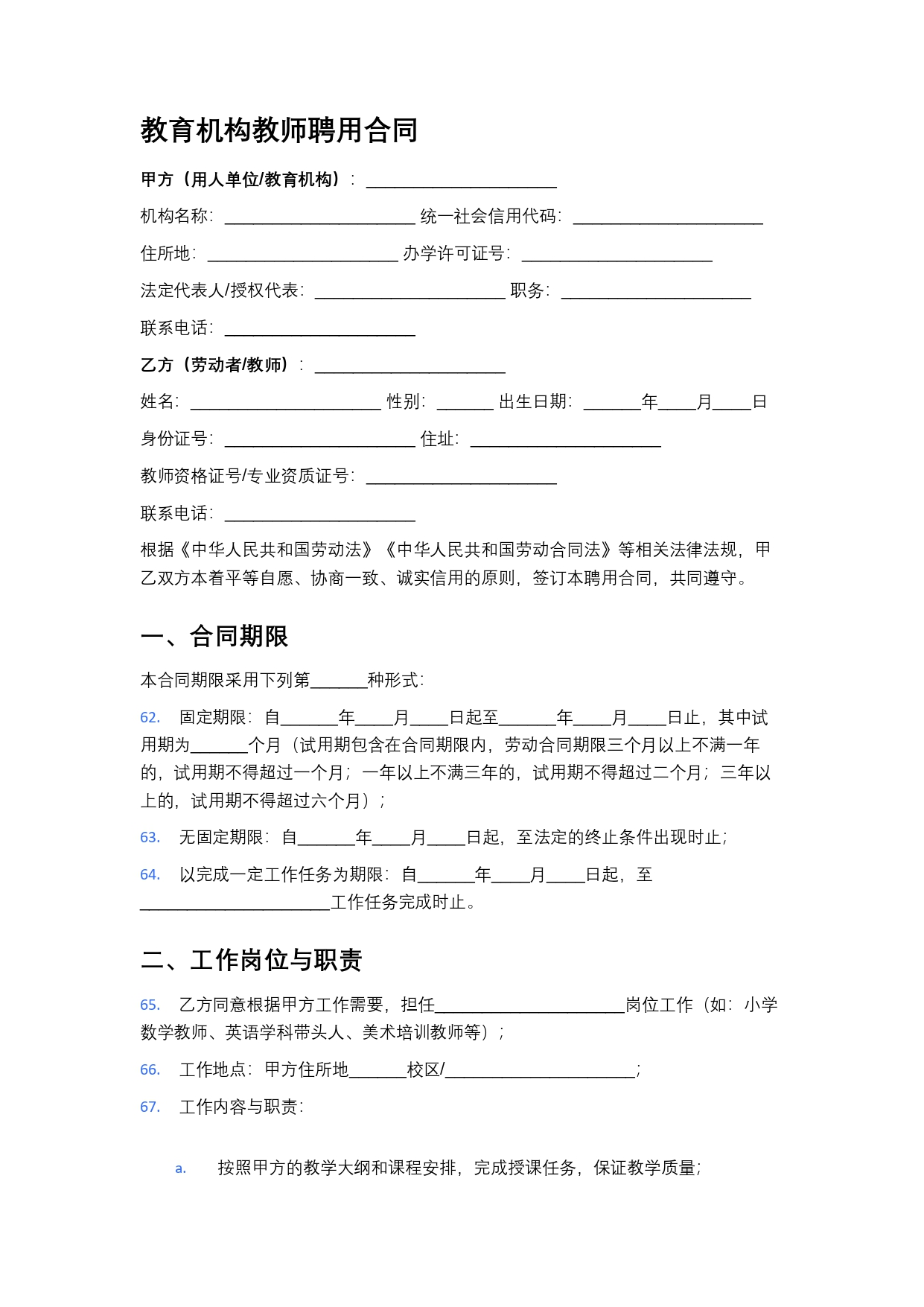 教育机构教师聘用合同